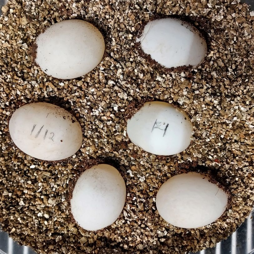 One of our Russian Tortoises laying eggs. Watch closely, and when she pulls in her head, it helps her to deposit an egg.